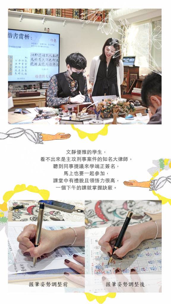 一堂課,姿勢就矯正過來。原來簽名還可以設計!多年字醜終於有救。