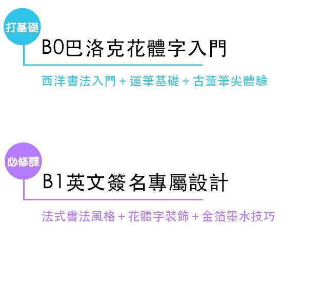 - 本班報名後,老師即會為您設計專屬英文草寫簽名課堂講義。