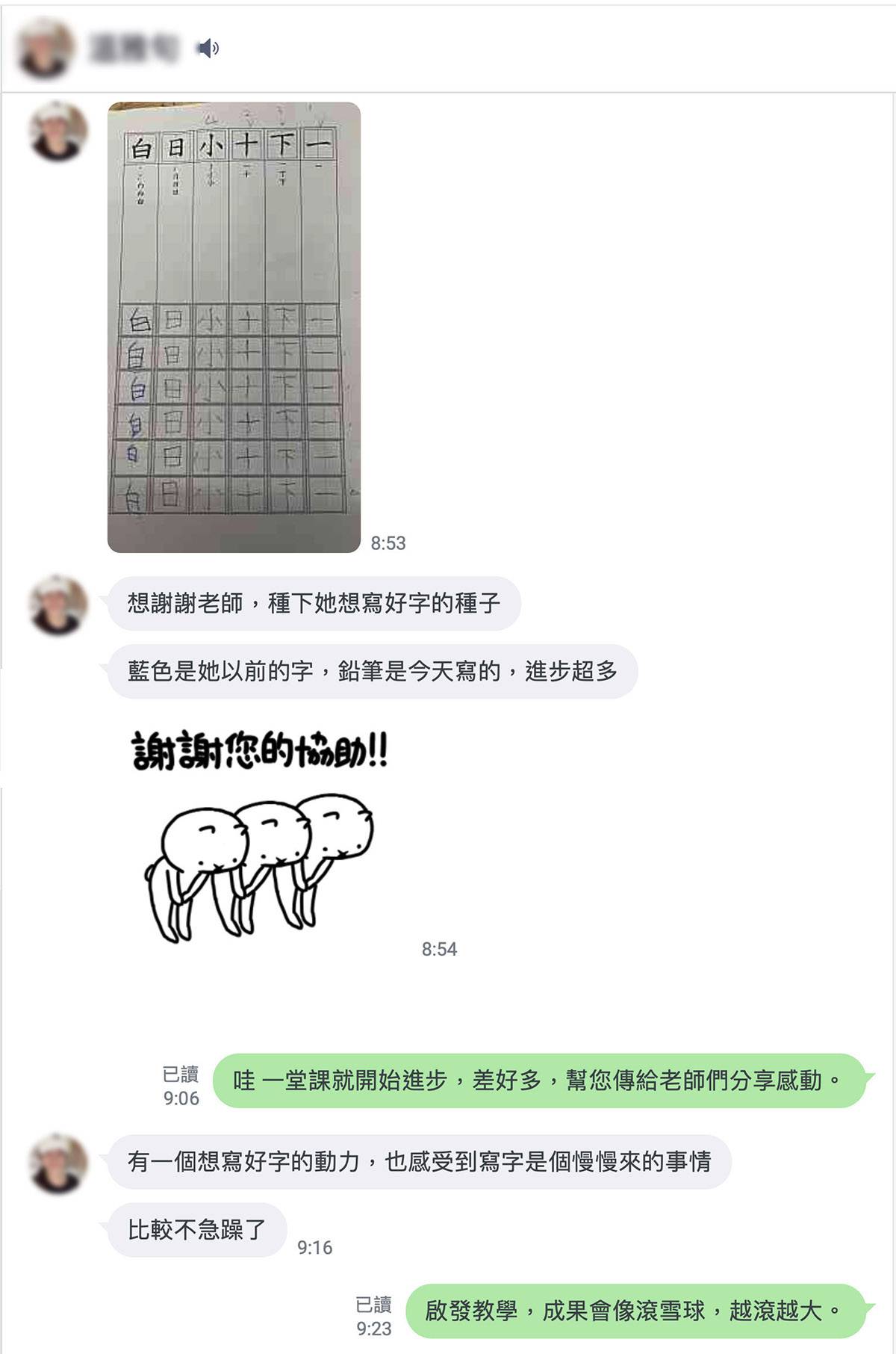 當方法對了,改變往往比想像中更快。課後,媽媽傳來孩子的練習作業。